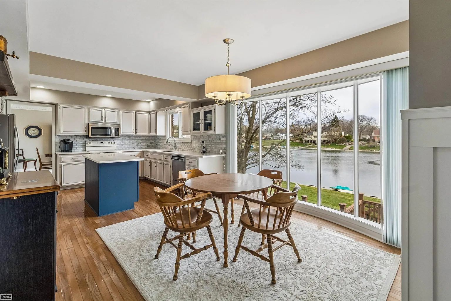 π‘π§ $350,000 β a lakefront home with stunning water views, floor-to-ceiling stone fireplace, and open concept kitchen with bar.